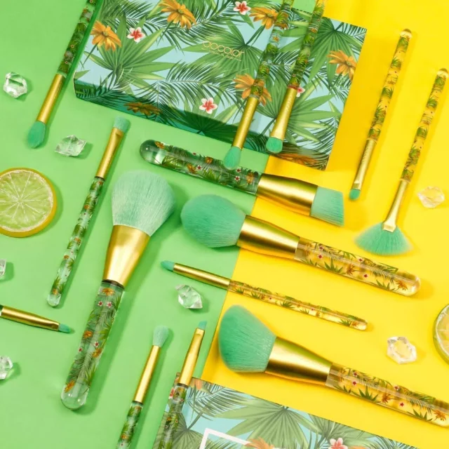 From the silky-soft synthetic bristles to the ergonomic design, every detail of this set is crafted with care. The brushes are expertly shaped to perform specific tasks, ensuring a professional-grade finish every time. The tropical rainforest-inspired handles are not only visually appealing but also lightweight and comfortable to hold, making your makeup routine a joy.