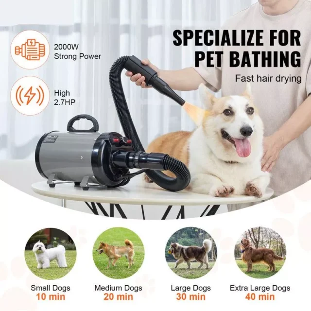 Whether you’re a pet owner or professional groomer, the 2000W Adjustable Speed Dog Blow Dryer is the ultimate tool for keeping your furry friends looking their best. With its powerful performance, safety features, and versatile design, this dryer makes grooming easy and enjoyable for both you and your pet. Don’t wait—upgrade your grooming routine today!