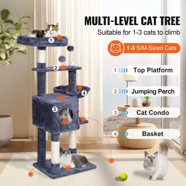 With its thoughtfully designed features, this cat tree offers more than just entertainment. Your cats will stay physically active and mentally stimulated, reducing stress and boredom. Its compact, space-saving design means you can place it in the living room, bedroom, or balcony without compromising your home’s aesthetics. Easy to assemble, it’s perfect for both first-time and experienced pet owners looking for a functional yet stylish addition to their home.