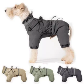 Warm Water-Repellent Padded Dog Overalls with Adjustable Reflective Harness