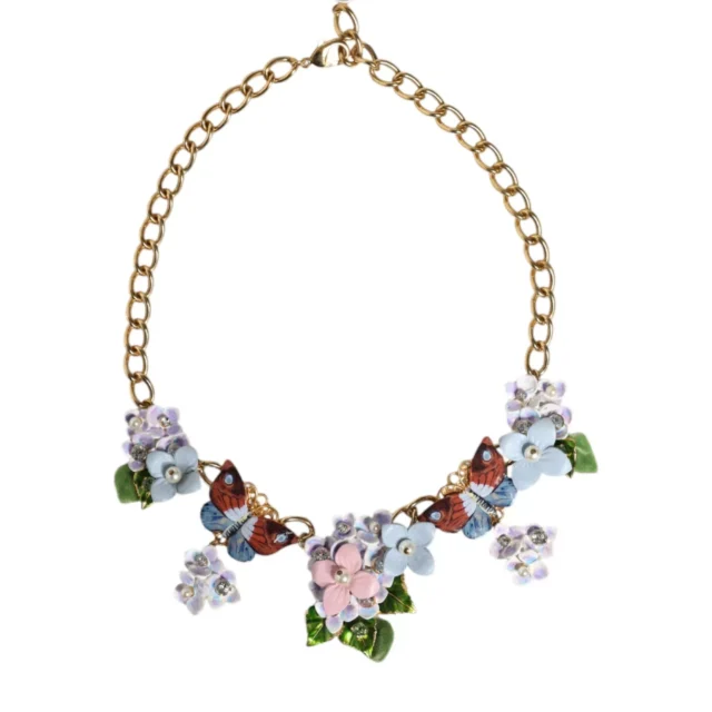 Make a statement with the Dolce & Gabbana Crystal Floral Necklace—a luxurious piece that’s perfect for any occasion. Add a touch of glamour to your jewelry collection today!