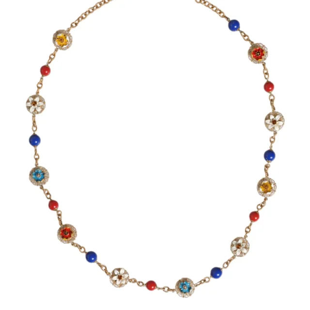 With its stunning multicolor crystals and intricate gold-tone design, this statement necklace is a true masterpiece. The long length allows for layering or wearing it solo as the centerpiece of your outfit. Lightweight yet substantial, it combines comfort with undeniable glamour. Every detail, from the logo charm to the polished finish, reflects Dolce & Gabbana’s signature style.