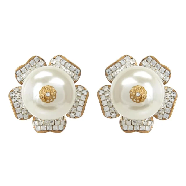 These Dolce & Gabbana earrings are more than just accessories—they’re a statement. Their floral design is not only fashionable but also timeless, making them perfect for both everyday wear or special occasions. The clip-on style means you can effortlessly add them to your collection, no piercings necessary. The golden hue, combined with sparkling crystals and the elegant faux pearl, makes them versatile enough to pair with both casual and formal outfits.
