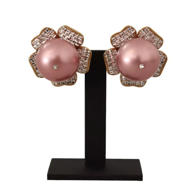 Step up your accessory game with these 100% Authentic Dolce & Gabbana Clip-on Earrings. Made in Italy, these stunning earrings feature a delicate flower design crafted in light gold-colored metal, perfect for adding a touch of luxury to any outfit. The intricate flower is adorned with shimmering miniature crystals that catch the light, while a large pink faux pearl serves as the show-stopping centerpiece. Whether you’re dressing up for a night out or want to elevate your everyday look, these earrings are the perfect statement piece.