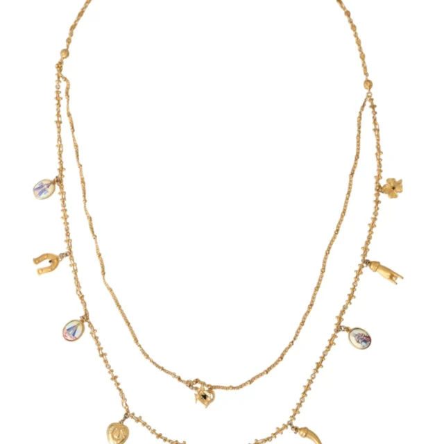 Make a bold fashion statement with the exquisite Dolce & Gabbana Embellished Fashion Necklace. Designed for those who crave sophistication and a touch of Italian luxury, this stunning necklace is a masterpiece of craftsmanship. Made from high-quality brass and finished in a radiant gold tone, it exudes elegance and charm, instantly enhancing any outfit. Whether you’re heading to a glamorous event or looking to add a luxe touch to your everyday wear, this necklace is the perfect choice.