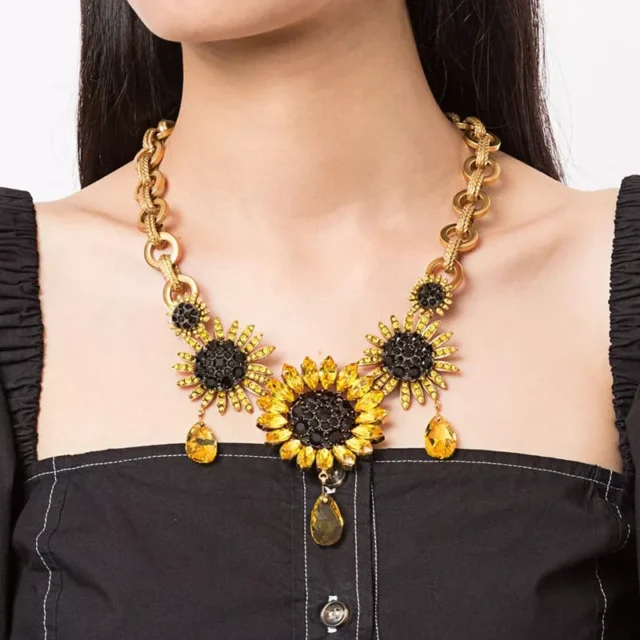 Exude Elegance with Dolce & Gabbana’s Gold Floral Crystal Necklace