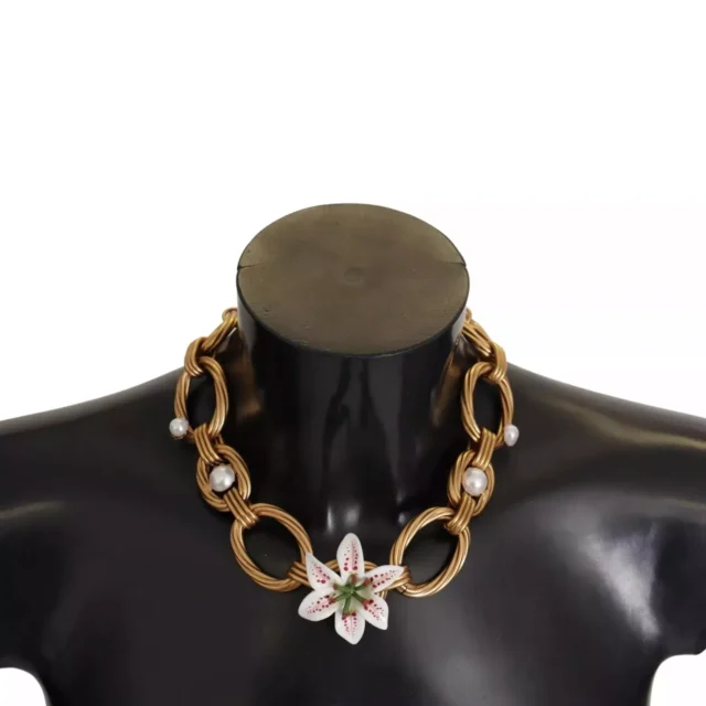 Experience the perfect blend of sophistication and artistry with this Dolce & Gabbana Gold Lilly Flower Pendant Necklace. Featuring an intricate lilly flower-inspired design, this exclusive piece exudes luxury and femininity. Crafted in Italy, it’s an exquisite example of the brand’s dedication to elegance and detail. Whether you’re elevating a casual look or complementing formal attire, this necklace is your ultimate statement accessory.