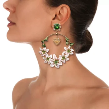 Dolce & Gabbana Green Crystal Flower and Heart Clip-On Earrings