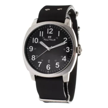 Folli Follie Quartz Stainless Steel Watch with Black Leather Strap & Extra Strap
