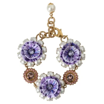 Dolce & Gabbana Golden Baroque Floral Bracelet with Crystals