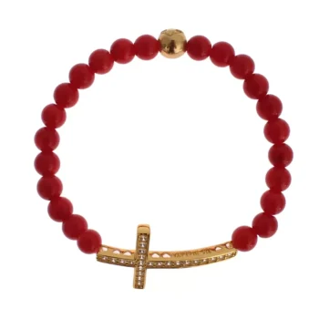 NIALAYA Gold-Plated Red Coral Beaded Bracelet for Women