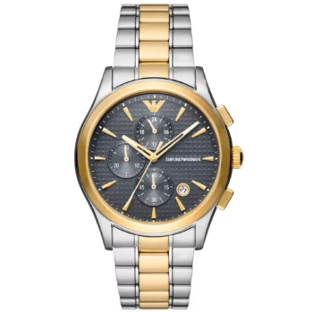 Emporio Armani Men’s Gold Analog Watch with Multicolor Band & Tachymeter