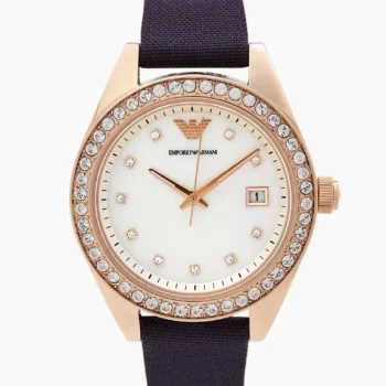 Emporio Armani Women’s Rose Gold Watch with Grey Textile Strap