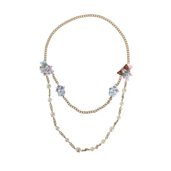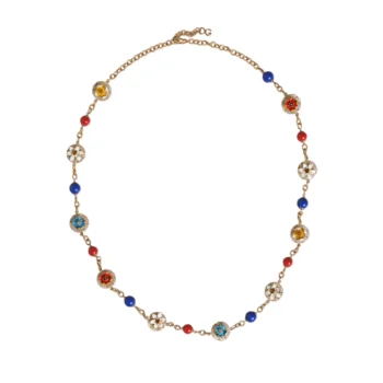 Dolce & Gabbana Gold Brass Crystal Floral Charms Necklace