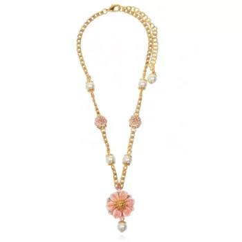 Dolce & Gabbana Gold Crystal Floral Charm Necklace