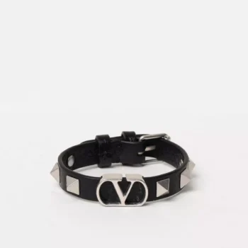 Valentino Garavani VLogo Leather Bracelet with Rockstud Detailing