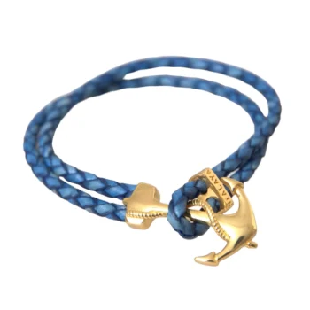 NIALAYA Blue and Gold Anchor Motif Sterling Silver Bracelet for Men