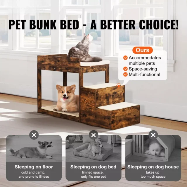 Transform your home into a haven for your pets with this multi-level bunk bed. With comfort, safety, and style in every detail, it’s more than just a piece of furniture—it’s a place for your pets to thrive. Order now and give your furry companions the gift of comfort and fun!