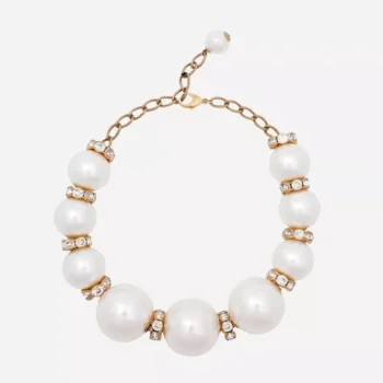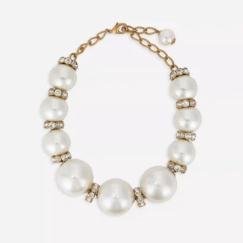 Dolce & Gabbana Gold-Tone Faux Pearl Charm Necklace with Crystals
