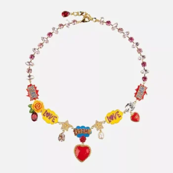 Dolce & Gabbana Fumetti Cartoons Necklace with Hand-Painted Roses & Crystals
