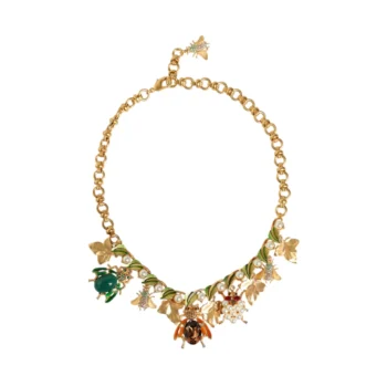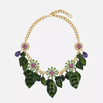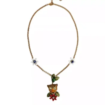 Dolce & Gabbana Gold Plated Brass Crystal Leaves Necklace