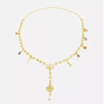 Dolce & Gabbana Gold Charm Necklace with Carretto Pendants and Crystals