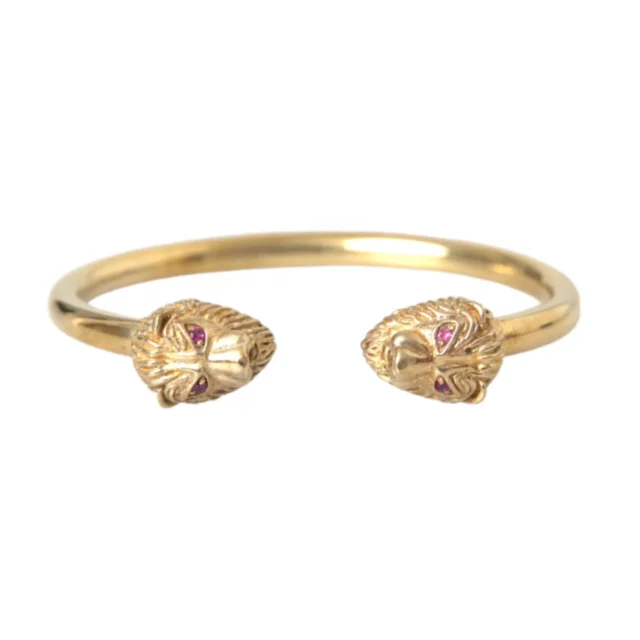 The NIALAYA Gold Lion Bangle is crafted with meticulous attention to detail. Made from 925 sterling silver, its durability and superior quality are undeniable. The gold finish adds a rich and luxurious touch, making it an accessory that radiates opulence. The lion motif, a symbol of strength and power, adds a bold personality to the design. To complete the look, the bangle features signature logo details and a cap for a refined finish.