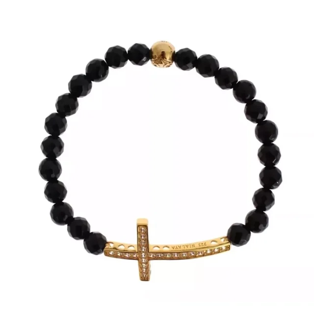 What sets the NIALAYA Bracelet apart is its unique blend of materials and design. The gold-plated 925 sterling silver offers a rich, radiant finish, while the black agate stones give the bracelet an element of calm and balance. The addition of the CZ diamond cross brings just the right amount of sparkle, making it a standout accessory that draws attention without overwhelming your look. This bracelet is a true conversation starter, offering a perfect balance of elegance and edge.