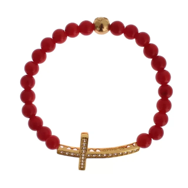 This stunning bracelet features luxurious gold-plated 925 sterling silver paired with vibrant red coral beads that exude warmth and energy. A sparkling CZ diamond cross centerpiece adds a subtle touch of glamour and makes this bracelet truly stand out. With its gold and red hues, the bracelet offers a versatile color palette that complements a wide range of styles and outfits. The engraved NIALAYA logo details reflect the brand’s commitment to quality and artistry.