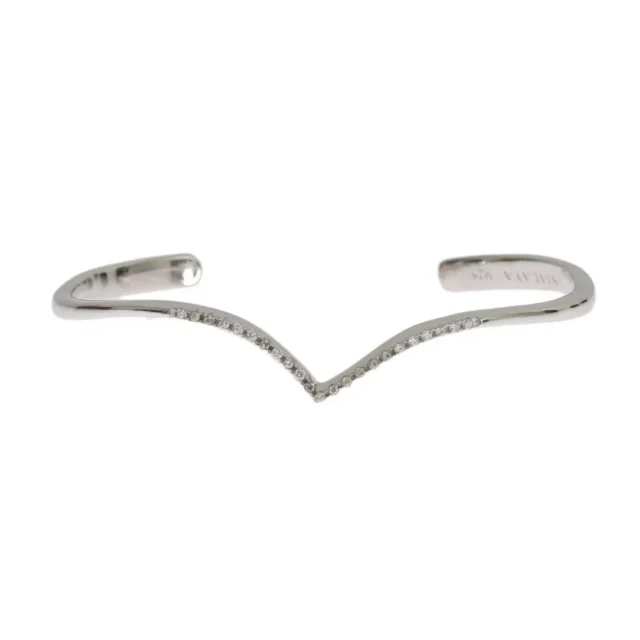 This NIALAYA bangle cuff is expertly crafted from durable 925 sterling silver, offering a sleek, polished finish. The clear CZ crystals embedded in the design add a touch of glamour, while the arched wing motif provides a striking and sophisticated aesthetic. Designed as a one-size piece, this bangle ensures a comfortable and secure fit for a variety of wrist sizes. The subtle logo details complete the look, adding an exclusive designer touch to this stunning accessory.