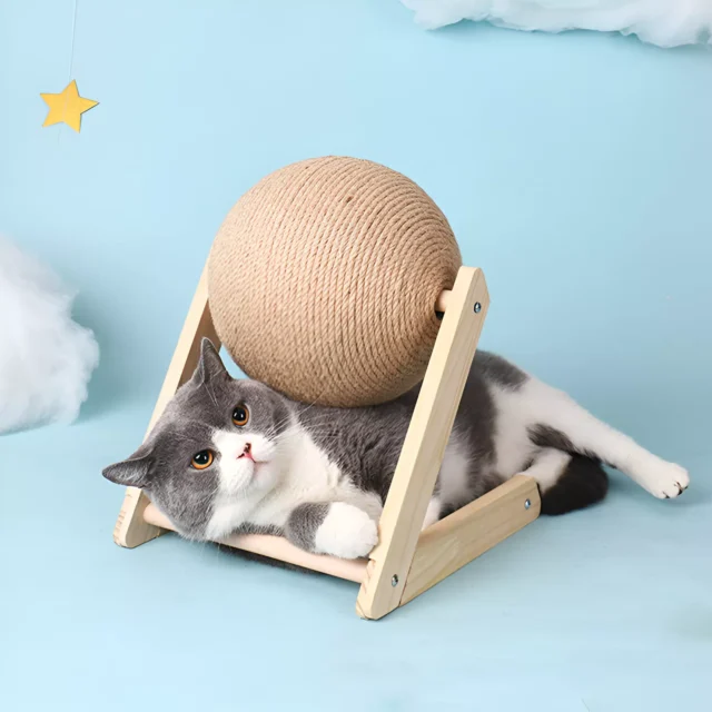 Crafted from natural solid wood and recyclable hemp rope, this scratching ball is built to withstand even the most energetic cats. The wear-resistant sisal rope is perfect for satisfying your cat’s scratching instincts, while the sturdy wooden base ensures stability during playtime. Not only is it highly durable, but it’s also an environmentally friendly option for conscientious pet owners.