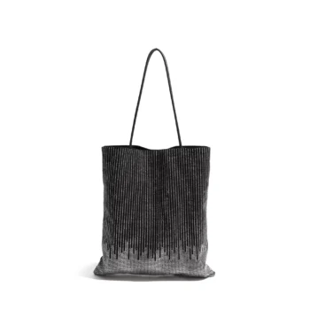 Diamond Lattice Black Padded Down Tote Bag with Large Capacity