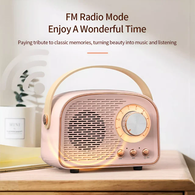 Retro Mini Bluetooth Speaker with FM Radio, Wireless TWS Music Player