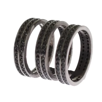 NIALAYA Ring 925 Sterling Silver with Black CZ Crystals for Women