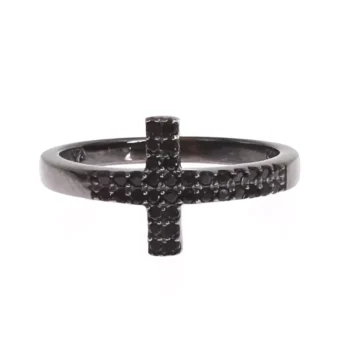 NIALAYA Women’s Black Rhodium Sterling Silver Ring with Black CZ Crystals