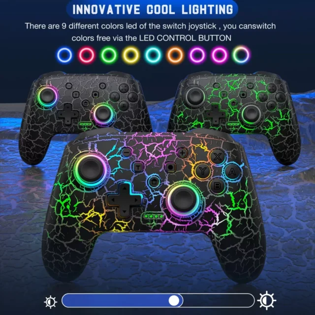 Level up your gaming experience with this cutting-edge wireless RGB pro controller, designed for Nintendo Switch, Switch Lite, Switch OLED, PC, iOS, and Android. Packed with advanced features like vibrant RGB lighting, smooth controls, and multi-platform compatibility, this gamepad is perfect for gamers who want precision, comfort, and style. Whether you’re playing at home or on the go, this controller will elevate every moment of gameplay.